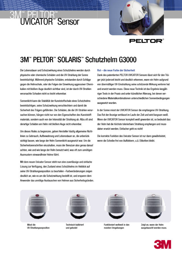 Helm übermäßiger UV-Einstrahlung ausgesetzt war, und signalisiert, wann